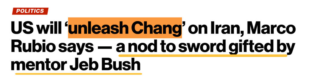 在获赠“蒋之剑”20年后,鲁比奥在针对伊朗的警告中旧词重提,也许有致敬政治导师的味道(如《纽约邮报》标题所指),主要是传递一个明确信号:美国将“火力全开/放大招”,攻击规模与强度都将升级。